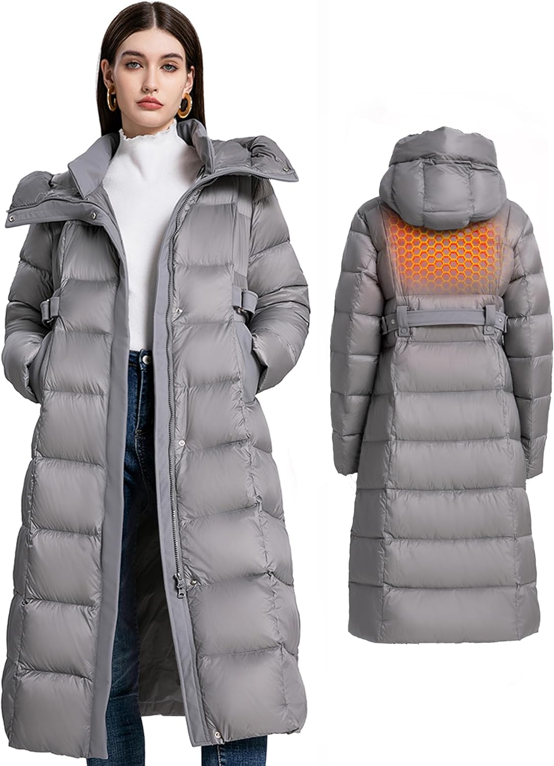 Women’s Winter Full Length 800 Fill Duck Down Coat,Plus Size Long Puffer Jacket Parka for Ladies,Hooded,Thickened